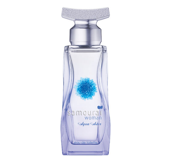 女性のしなやかなボディラインを表現したサムライウーマンのボトルが落ち着きのある深いブルーにアレンジされ、美しく繊細な女性をイメージさせる一輪のアスターが配置されています。ボトルと同じく大輪の青いアスターが施されたパッケージは、控えめでありながらも芯の強い、サムライウーマンがイメージする女性らしさを表すものとなっています。